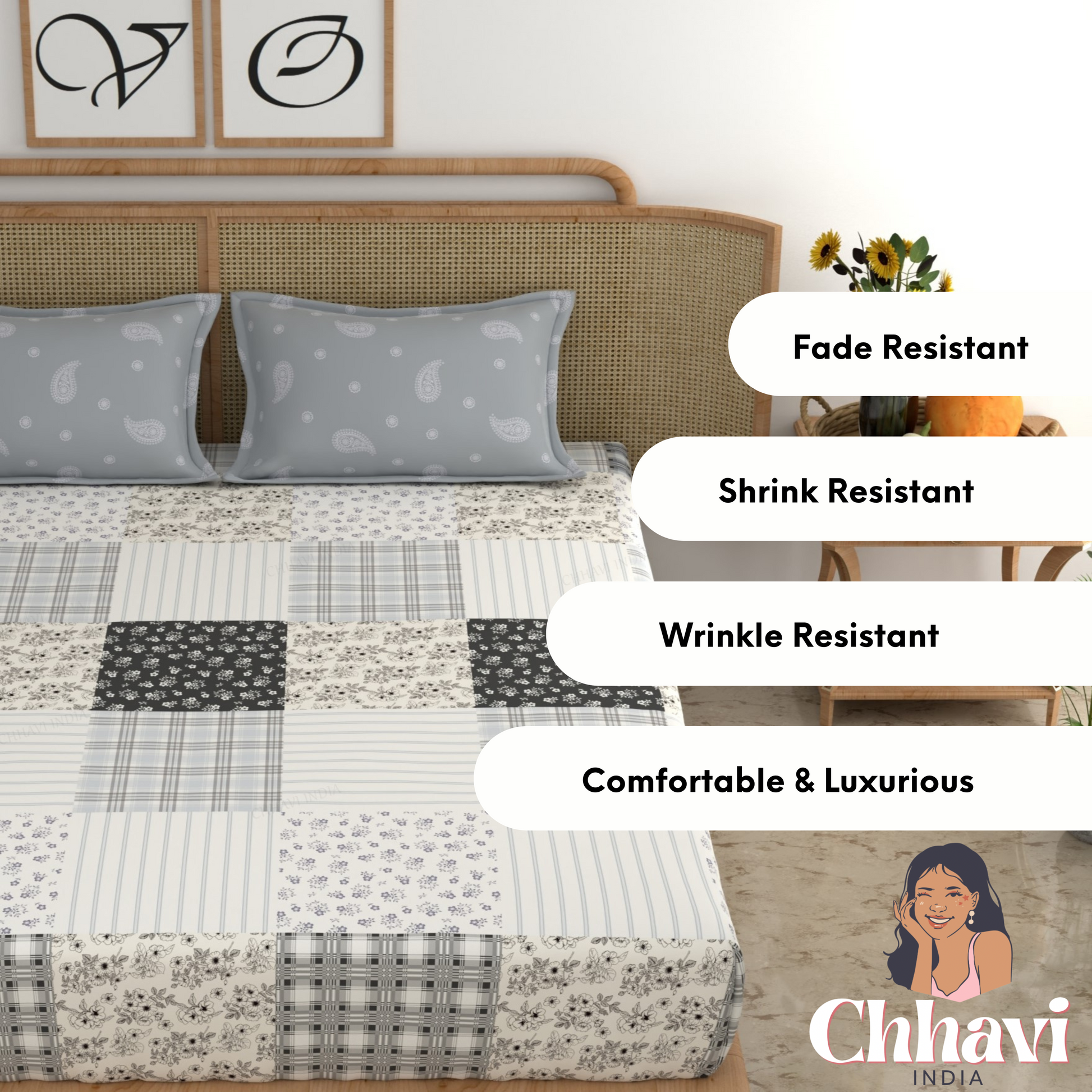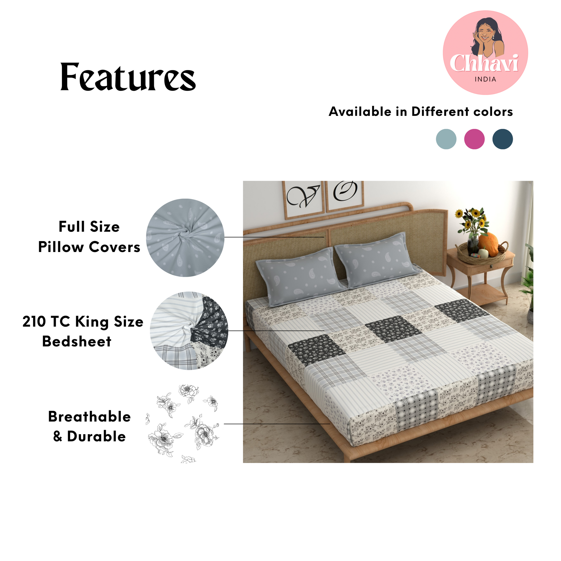 CHHAVI INDIA 210 TC Microfiber Printed King Size Bedsheet With Pillow Covers