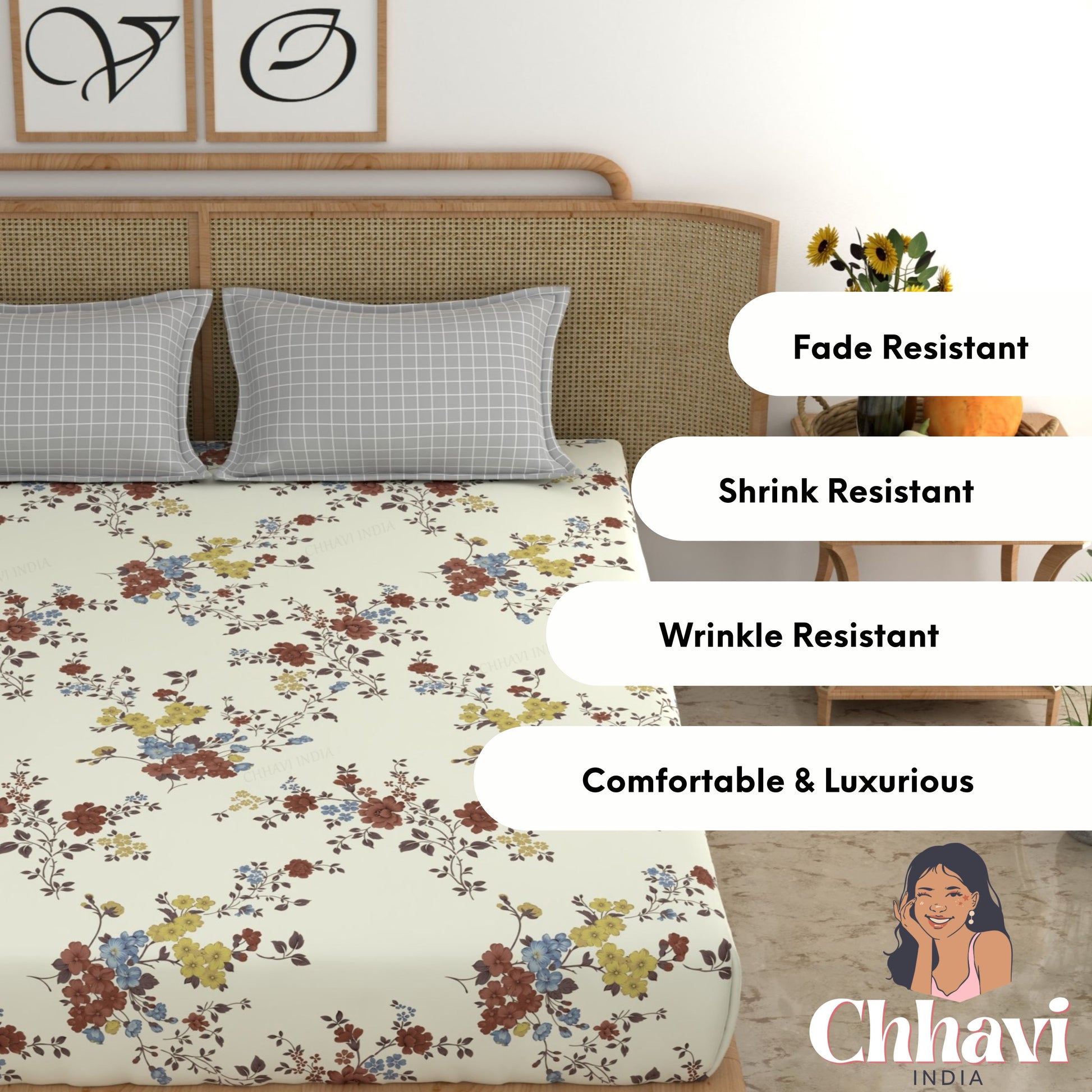 Give your bedroom a stylish makeover with this beautiful King size bedsheet from CHHAVI INDIA Inspired by nature, the bedsheet is 100% premium quality microfiber that is soft to touch and comfortable on the skin. It delivers maximum relaxation and comfort while sleeping. Suitable for all seasons and a perfect addition to your bedroom linen!