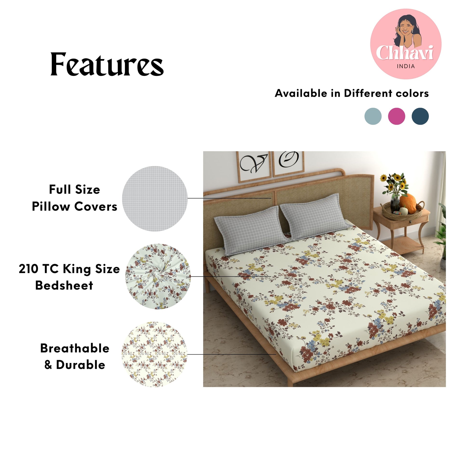 - Pack Contents – 1 King Size Bedsheet with 2 pillow cover