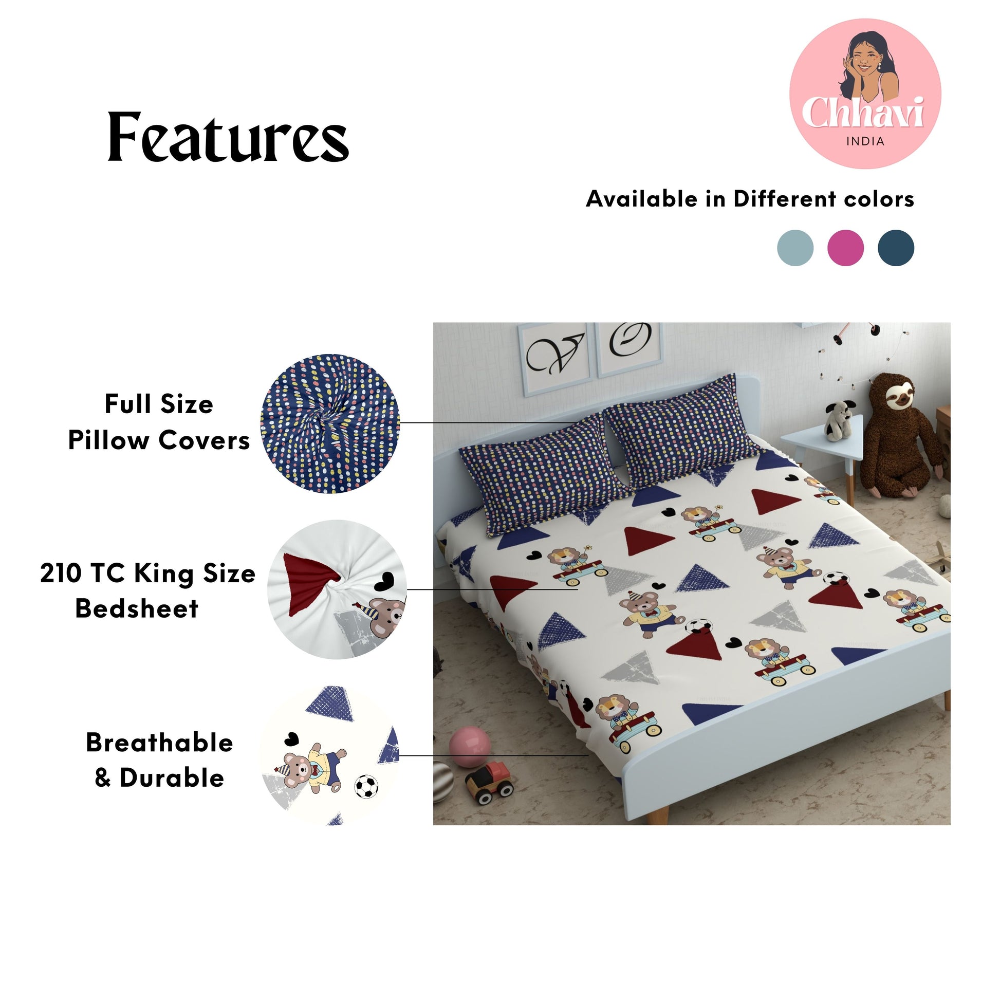 - Pack Contents – 1 King Size Bedsheet with 2 pillow cover
