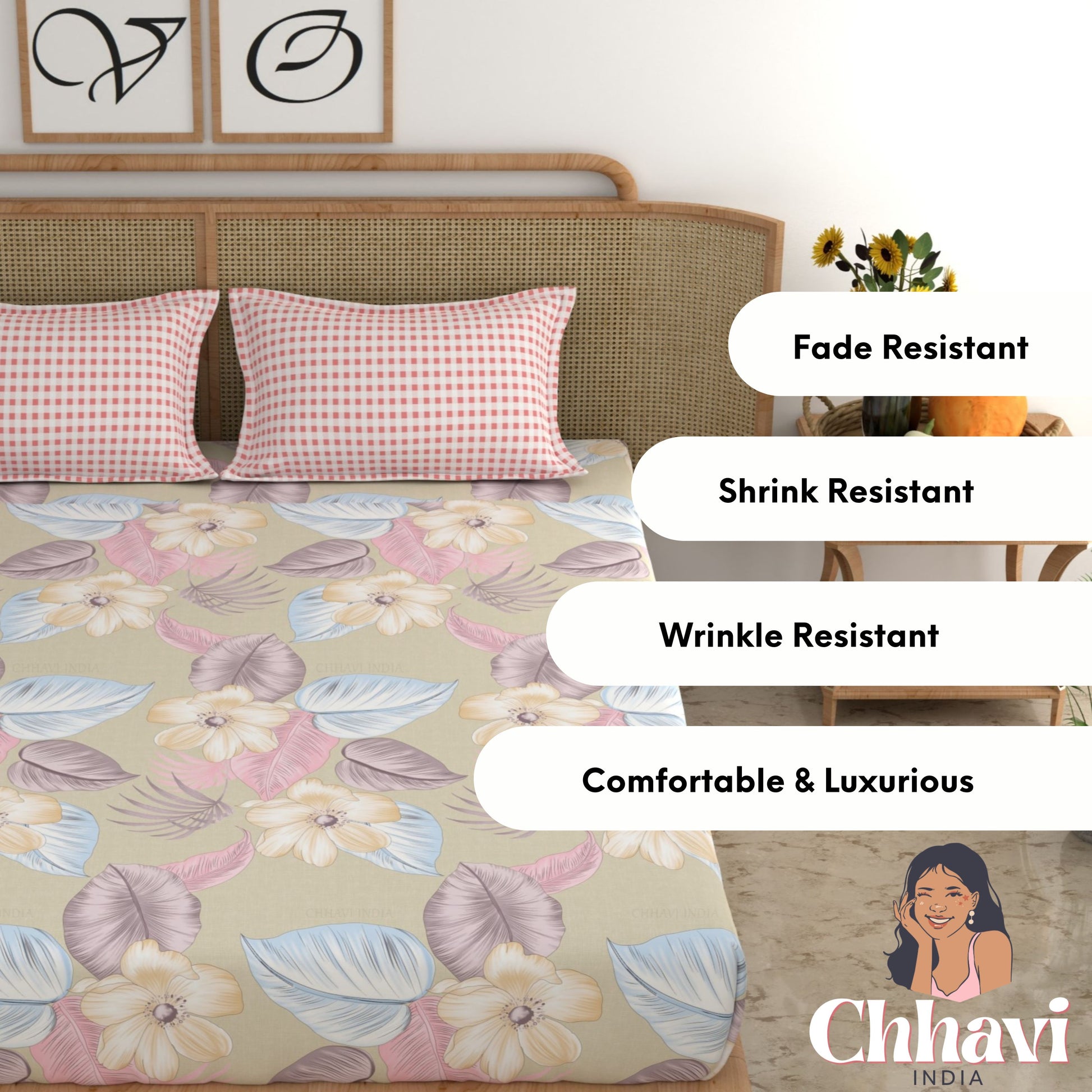 CHHAVI INDIA 210 TC Microfiber Printed King Size Bedsheet With Pillow Covers