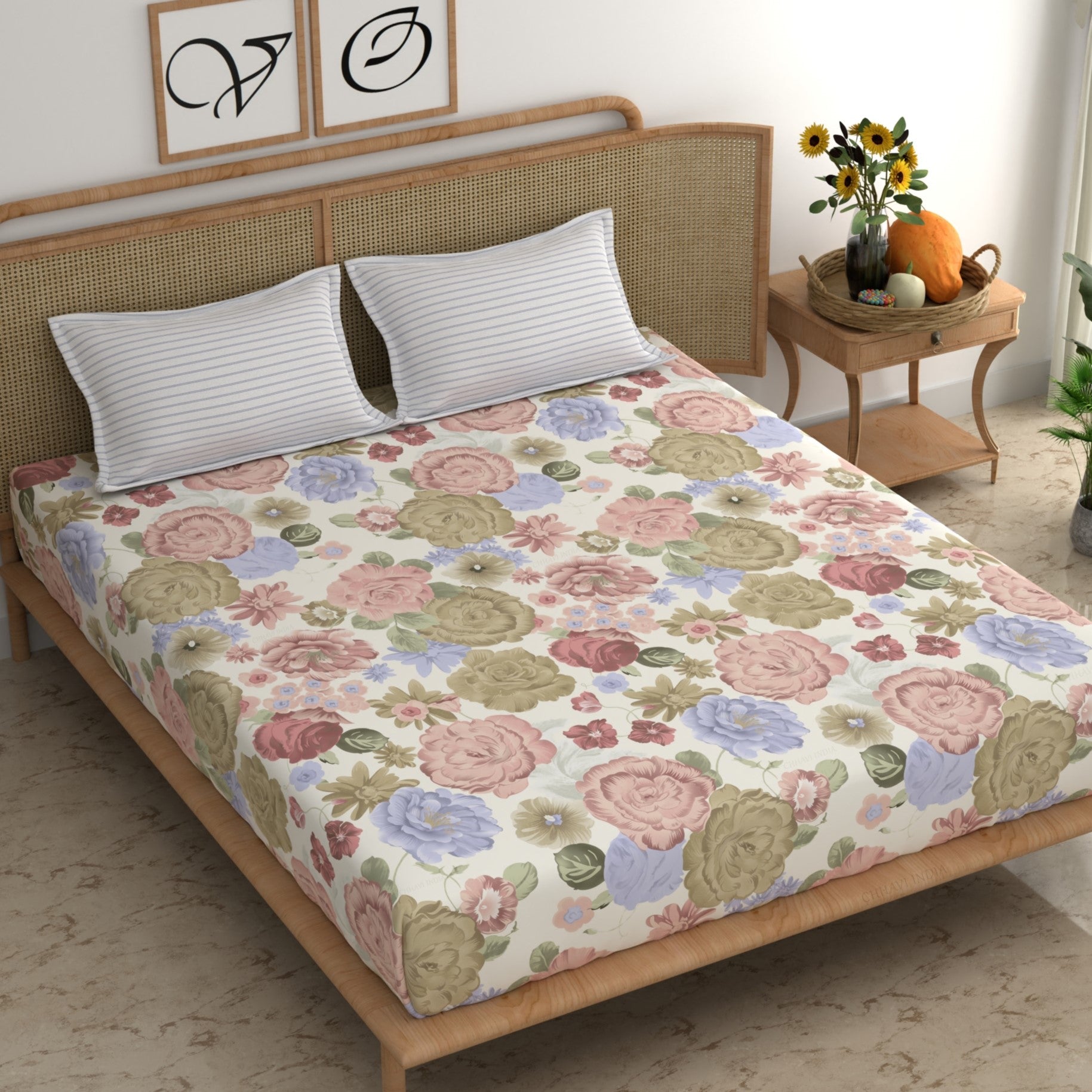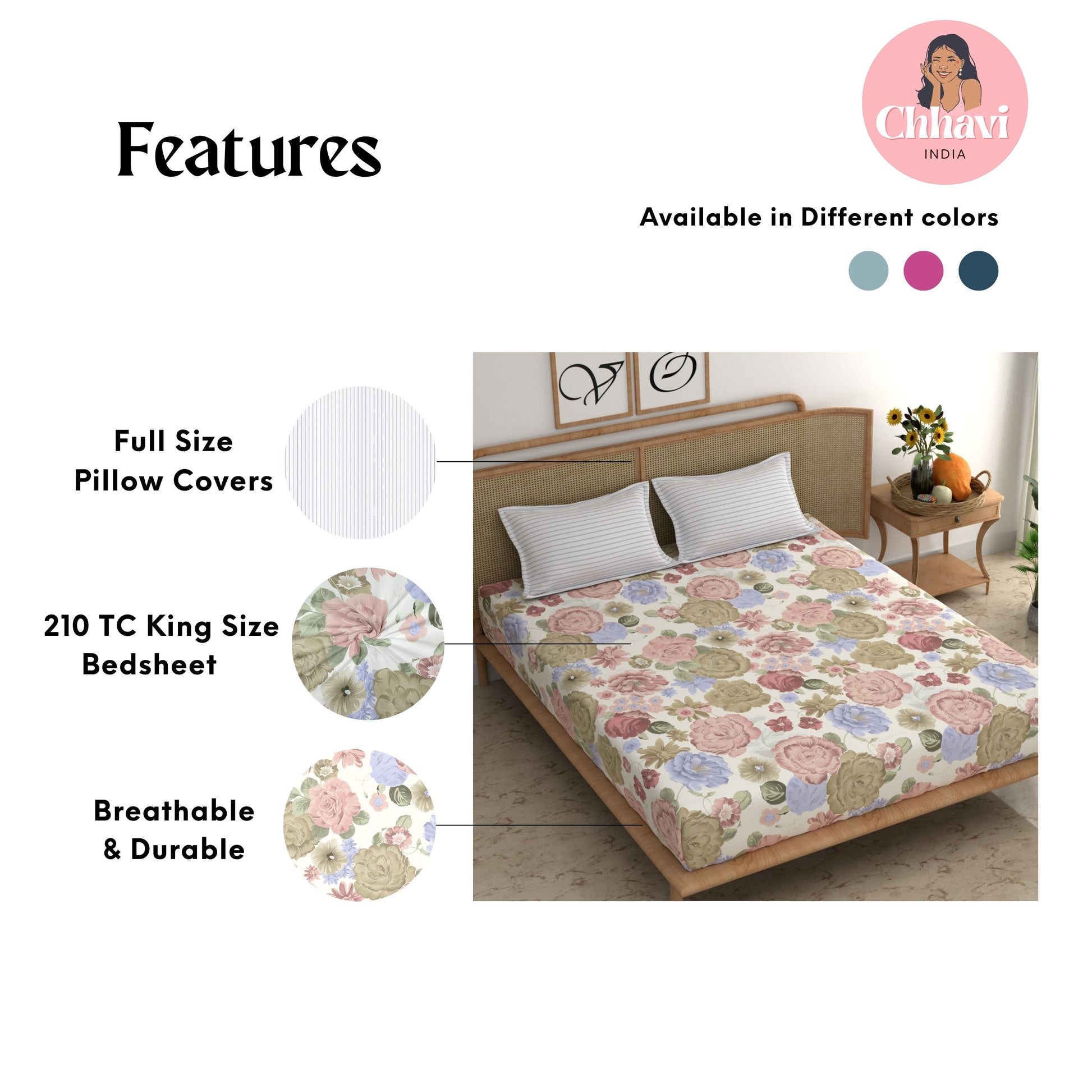 - Pack Contents – 1 King Size Bedsheet with 2 pillow cover