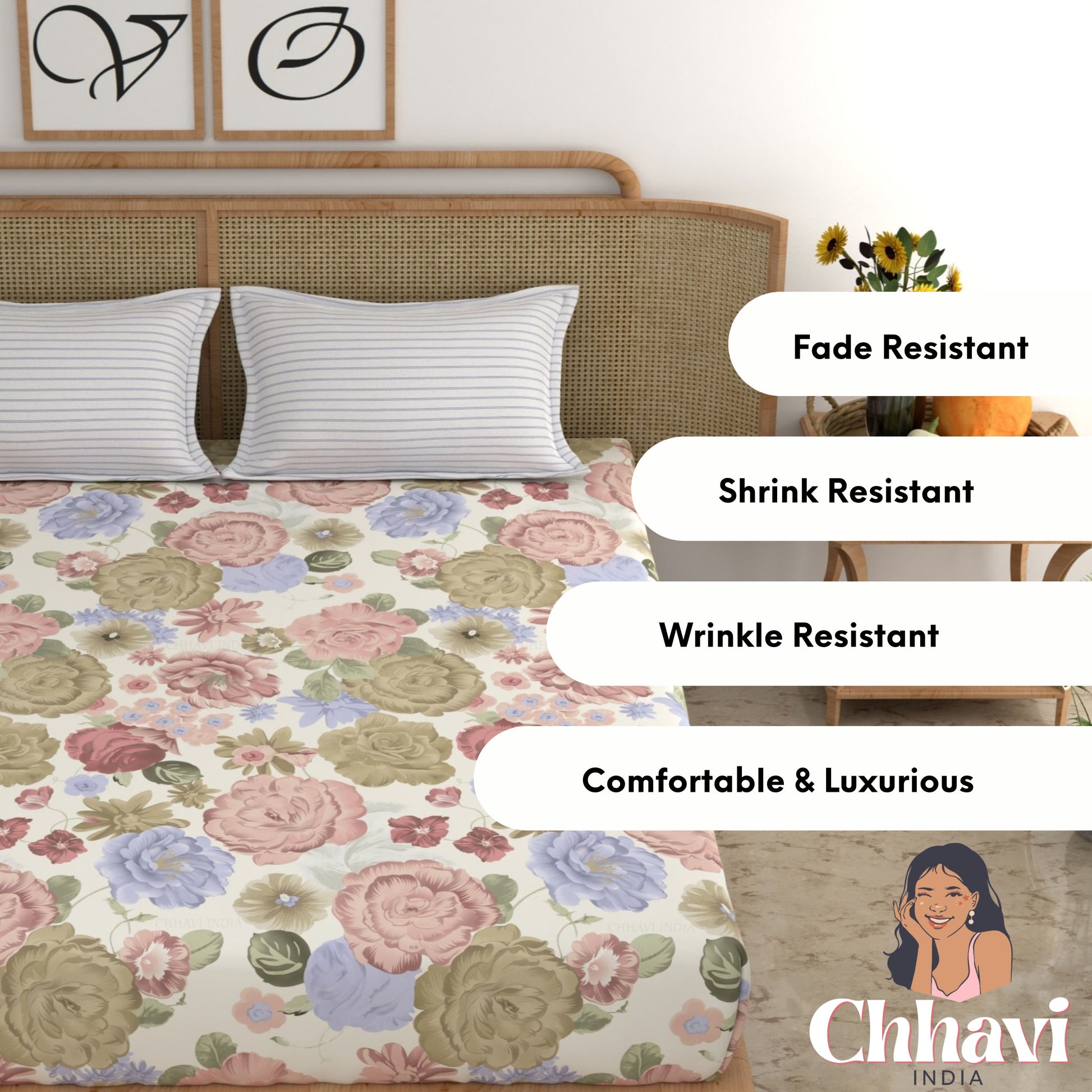 Give your bedroom a stylish makeover with this beautiful King size bedsheet from CHHAVI INDIA Inspired by nature, the bedsheet is 100% premium quality microfiber that is soft to touch and comfortable on the skin. It delivers maximum relaxation and comfort while sleeping. Suitable for all seasons and a perfect addition to your bedroom linen!