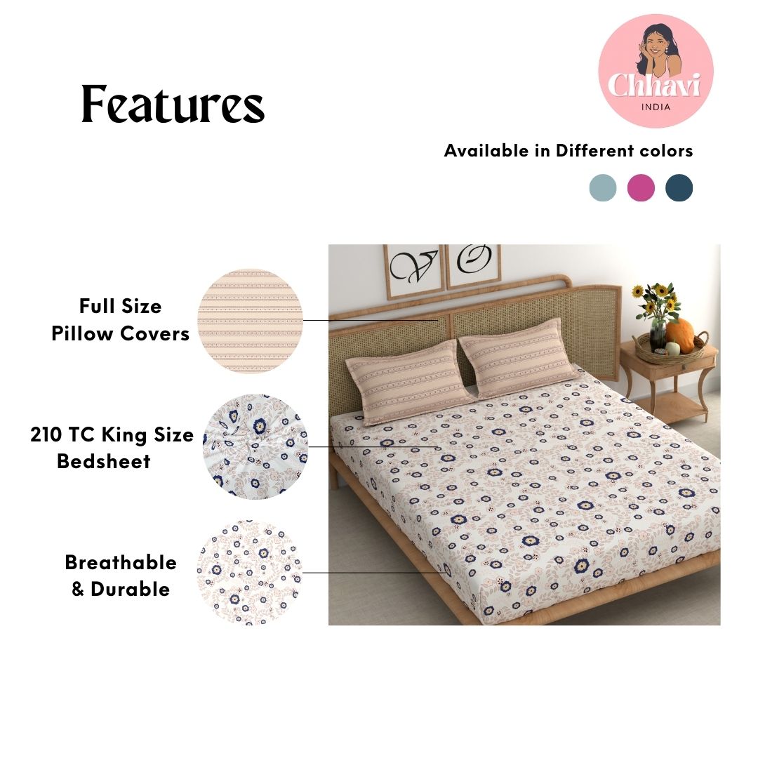CHHAVI INDIA 210 TC Microfiber Printed King Size Bedsheet With Pillow Covers