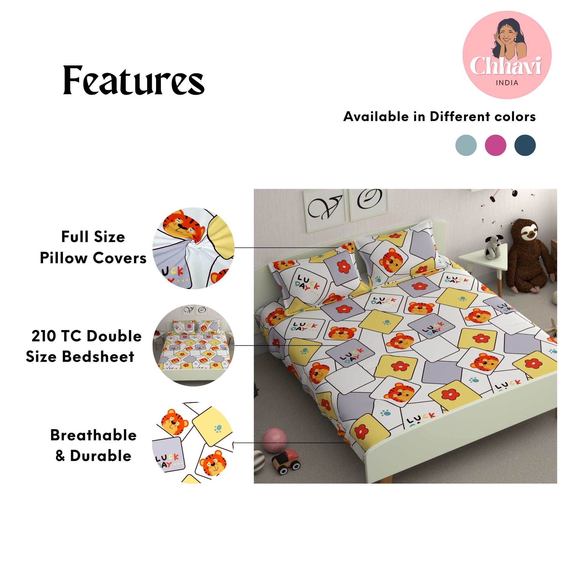 - Pack Contents – 1 Double Bedsheet with 2 pillow cover