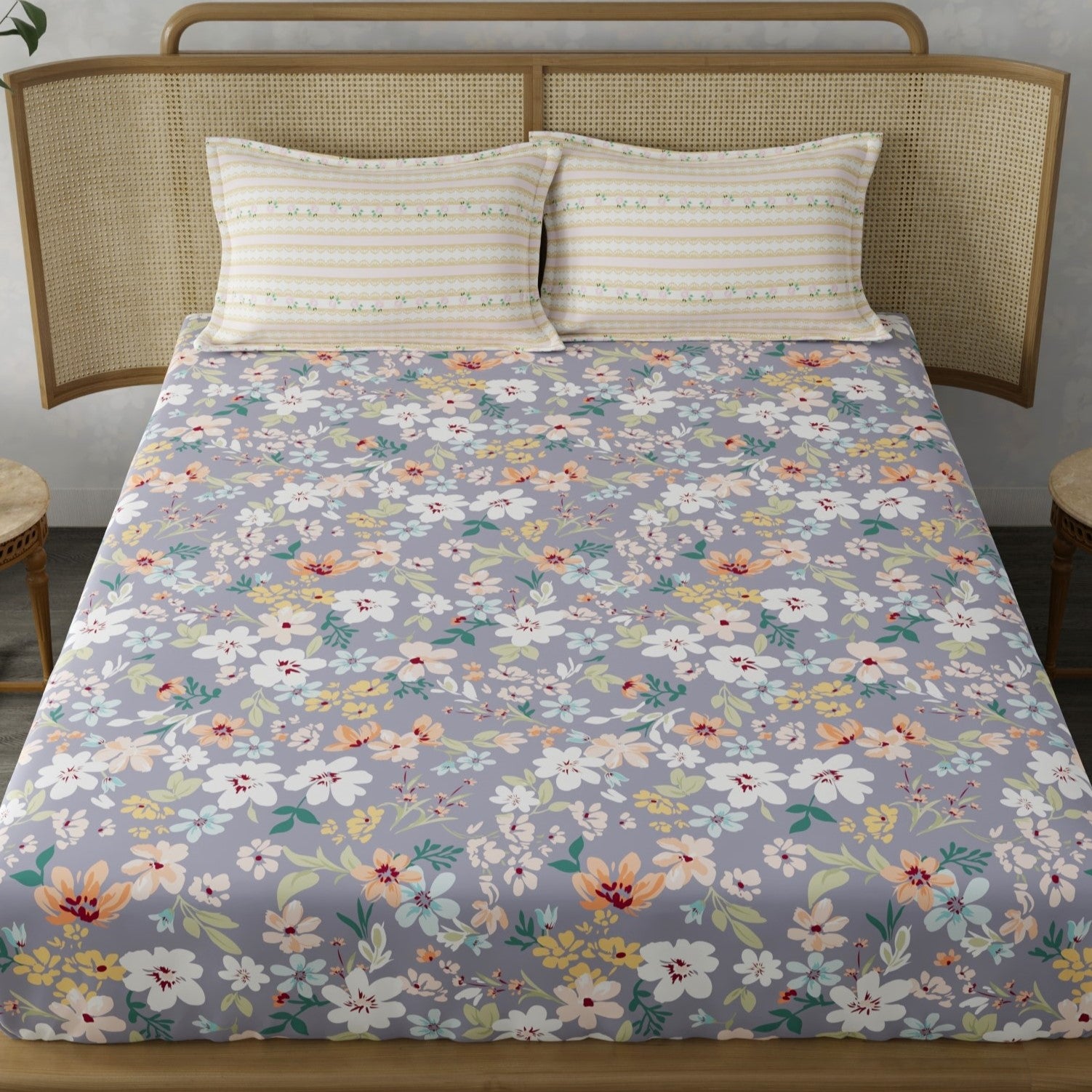 CHHAVI INDIA 210 TC Microfiber Printed King Size Bedsheet With Pillow Covers