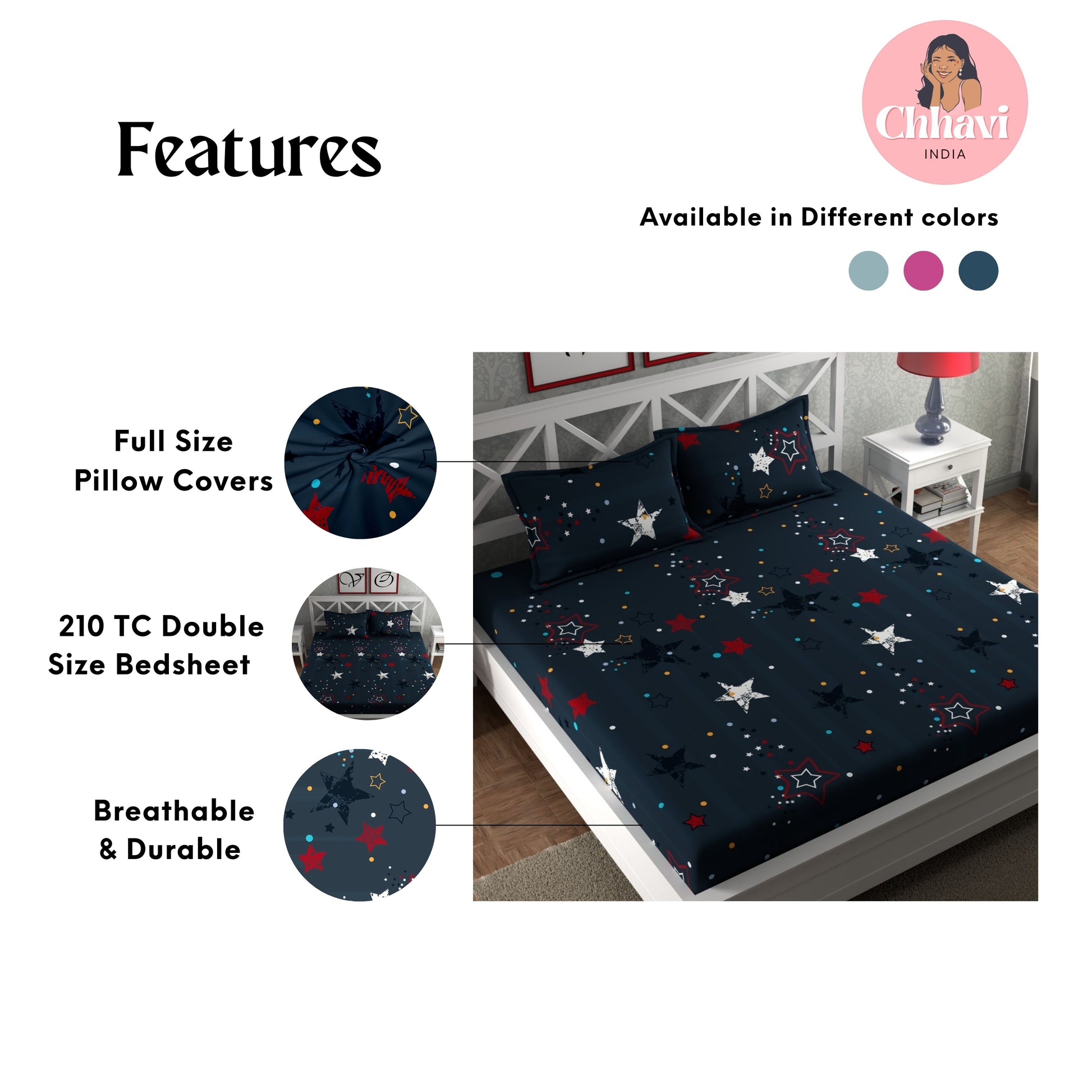- Pack Contents – 1 King Size Bedsheet with 2 pillow cover