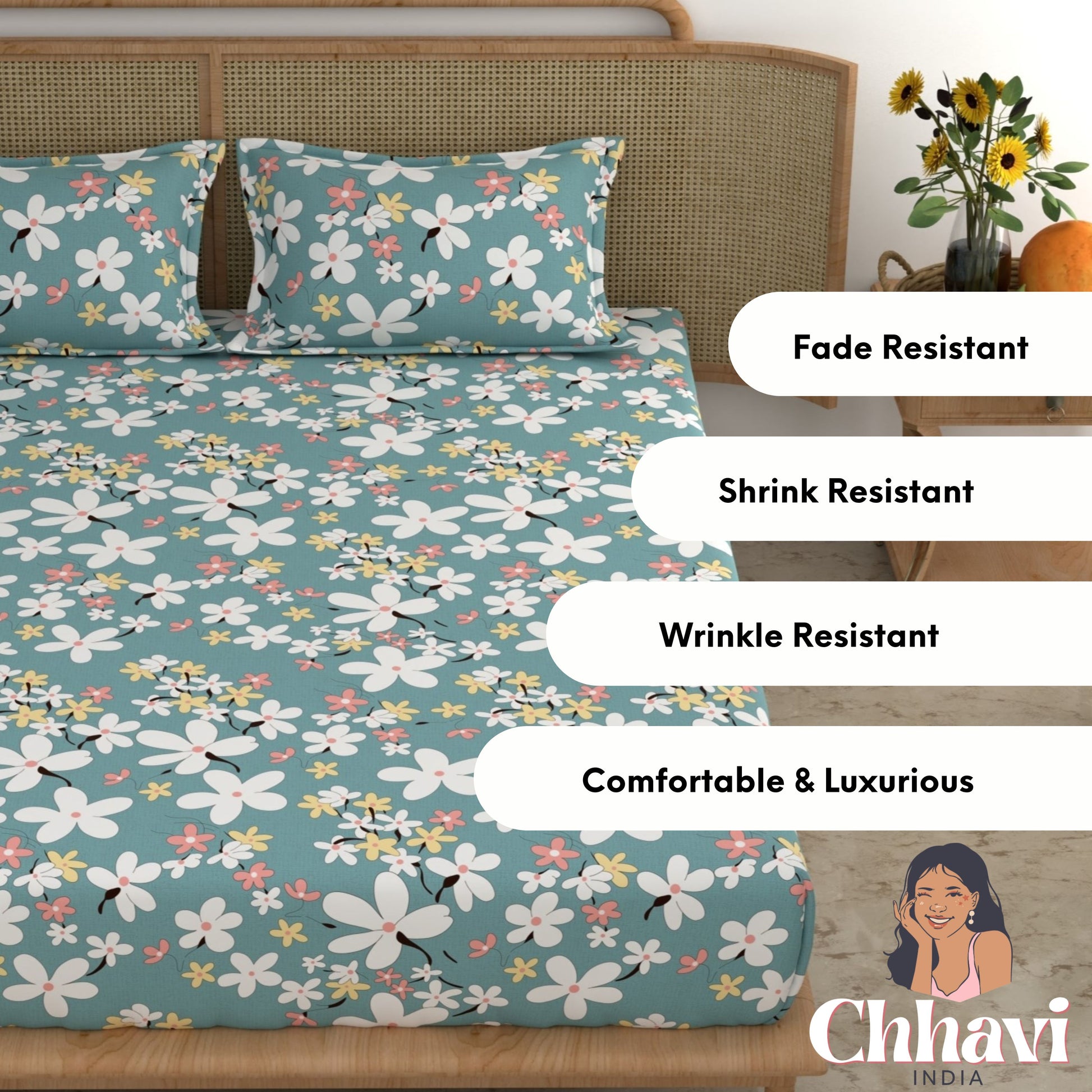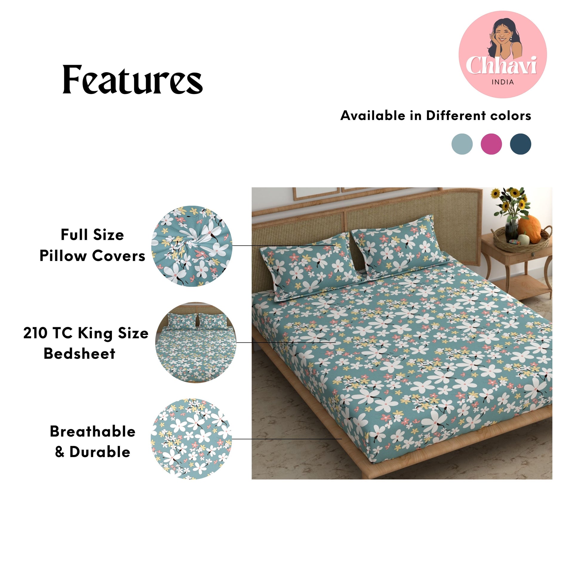 CHHAVI INDIA 210 TC Microfiber Printed King Size Bedsheet With Pillow Covers